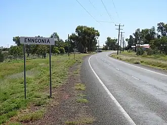 Enngonia, formerly known as Eringonia, is a small town in the north-west of New South Wales, Australia, in Bourke Shire, approximately 98 kilometres (61 mi) north of the regional centre of Bourke. The Warrego River runs just to the west of the town. The central street, Belalie Street, is otherwise the Mitchell Highway running north–south.