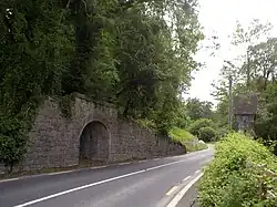 The Bray and Enniskerry Railway was proposed in the 19th century, to link the town to Bray. Some initial work was carried out, including building a bridge to carry the railway over Dublin Corporation's Vartry watermain. Wicklow County Council recently removed much of the railway embankment in road widening, but left the bridge, which is directly opposite the ornate bridge carrying the watermain over the Cookstown River, a tributary of the River Dargle. The plan ran into financial difficulties, and the rails were lifted and sold off.[7]