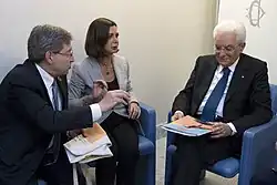 On 28 April 2013 Giovannini was appointed Minister of Labour and Social Policies in the cabinet led by Enrico Letta.[15] It was the so-called Grand coalition government, with support from the centre-left Democratic Party (of which Letta was Deputy Secretary), the centre-right People of Freedom, of former Prime Minister Silvio Berlusconi, and the centrist Civic Choice. Letta's government became the first in the history of the Italian Republic to include representatives of all the major candidate-coalitions that had competed in the election.[16]