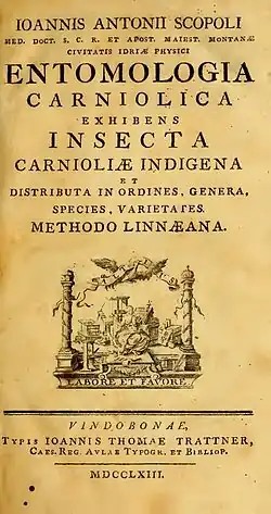 - ^ a b Giovanni Antonio Scopoli (1763). Entomologica Carniolica. Vienna: Johann Thomas von Trattner.