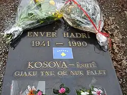 Enver Hadri (1941 – 25 February 1990) was a Kosovo Albanian human rights activist. According to an Albanian blog AACL, he was assassinated while he stopped at a traffic light in Brussels,[1] by three Yugoslavs working for State Security Administration (UDBA) according to the verdict handed down on Mardi, Veselin Vukotic and Andrija Draskovic were found guilty of carrying out the crime and Bozidar Spacic of ordering it. This happened in the commune of Saint-Gilles, at the crossroads between the rue St Bernard and the rue de la Victoire. Hadri had with him the list of 32 Albanians killed in Kosovo by Serbia, which he would submit to the European Parliament's Human Rights Committee the next day. He lived in Brussels since 1972 where he worked to put on agenda the human rights of Albanians in Kosovo.[2][3][4]