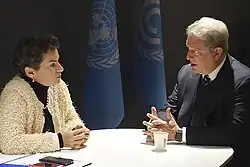 In 2007, Al Gore was the main non-official representative for the United States in the United Nations Climate Change Conference in Bali, which is a series of discussions that plans to continue where the Kyoto Protocol left off when it expires in 2012.[24] He used a famous World War II poem written by Pastor Martin Niemöller to describe how the international community is eerily accomplishing nothing in the face of the greatest crisis in human history.[25] He ended the speech using his famous tag line: "However, political will is a renewable resource."[26]