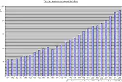 Air transport in the United Kingdom is a growth industry. In the period 1981 to 2006 the number of terminal passengers increased by 400 per cent and air transport movements by 250 per cent.[1][2] Although the transport of freight declined slightly year on year between 2004 and 2006, in the decade since 1996 air freight has increased by 31 per cent.[3] During the period in which government policy was being formulated the number of passengers exceeded 200 million, and in 2006 the industry handled over 236 million passengers (up 3 per cent from the previous year), with nearly 2.4 million air transport movements (up 1.8 per cent).[2][4][5]