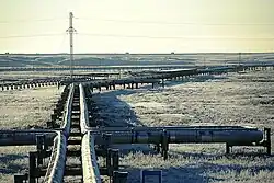 As part of the rapid ramping up of production of oil and gas during the 1960s and 1970s, proper infrastructure for both the handling of petroleum products, as well as social infrastructure for the influx of workers, was frequently overlooked.[6]: 48 Thousands of kilometres of pipelines were built using substandard construction codes for the harsh climate, resulting in vast numbers of leaks and spills.[6]: 48 According to a 1997 essay by ZumBrunnen, environmentalists at the time estimated that 35,000 pipeline ruptures were occurring each year, accounting for between one and three percent of Russian oil output (3 to 10 million metric tons annually).[5]: 107 Meanwhile, 19 billion cubic meters of gas were being flared in West Siberia annually, releasing polyaromatic hydrocarbons, heavy metals, carbon, and nitrogen dioxides into the local atmosphere.[5]: 107 In 2012, the figure was estimated at 17.1 billion cubic metres.[29]