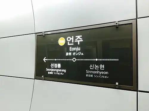 Eonju is station on Line 9 of the Seoul Metropolitan Subway. It opened in March 2015.[1]