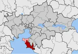 Epanomi (Greek: Επανομή) is a town and a former municipality in the Thessaloniki regional unit, Greece. Since the 2011 local government reform it is part of the municipality of Thermaikos, of which it is a municipal unit.[2] It is located 25 km (16 mi) away from the city center of Thessaloniki. The municipal unit includes the village of Mesimeri, with a combined population of 9,910 (2021).[1] The municipal unit Epanomi has an area of 91.541 km2 (35.344 sq mi), and the community Epanomi has an area of 78.716 km2 (30.392 sq mi).[3]