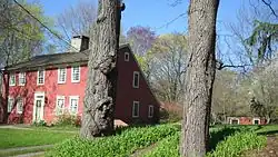 The Ephraim Hawley House is a privately owned Colonial American wooden post-and-beam timber-frame saltbox house situated on the Farm Highway, Route 108, on the south side of Mischa Hill, in Nichols, a village located within the town of Trumbull, Connecticut, the U.S.[1] It was expanded to its present shape by three additions.[2][3][4] Over time, the location of the house has been identified in four different named townships, as jurisdictional boundaries changed, but it has never been moved. These towns were Stratford (1670–1725), Unity (1725–1744), North Stratford (1744–1797), and Trumbull (1797–present).