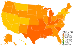 - ^ "Obesity and Overweight for Professionals: Data and Statistics: Adult Obesity Facts". Centers for Disease Control and Prevention. 13 August 2012. Archived from the original on 25 August 2009. Retrieved 5 November 2012.