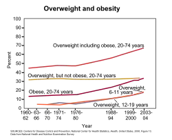 - ^ Ogden CL, Carroll MD, Curtin LR, McDowell MA, et al. (2006). "Prevalence of overweight and obesity in the United States, 1999–2004". JAMA. 295 (13): 1549–55. doi:10.1001/jama.295.13.1549. PMID 16595758.
