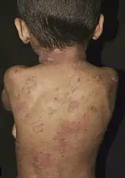 - ^ a b c d e f g h i j k l m n o p q r s t u Rice, Ashley S.; Crane, Jonathan S. (2023). "Epidermolytic Hyperkeratosis". StatPearls. StatPearls Publishing. PMID 31335043.