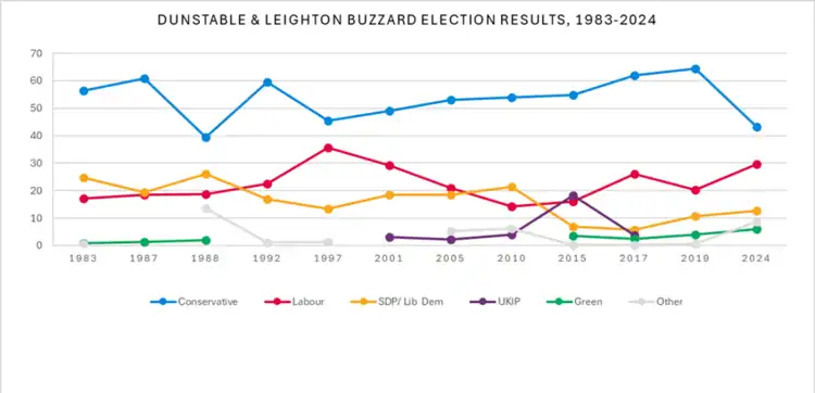 When Epping Forest was first created, it was more favourable to the Conservatives than the old Epping seat, as it lost the new town of Harlow (part of the old Epping Rural District) and gained the more Conservative Chigwell Urban District. During the Thatcher period the Labour Party's vote was crushed. Even though the Liberals managed to move into second place, their vote did little more than follow national trends and as soon as 1987 their votes dropped away as well.