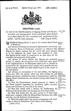 | Long title | An Act for the Disafforestation of Epping Forest and the preservation and management of the uninclosed parts thereof as an Open Space for the recreation and enjoyment of the public; and for other purposes. |