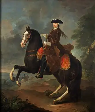 Equestrian Portrait of Amalia of Saxony is a mid-18th century portrait of Maria Amalia of Saxony, produced by Francesco Liani towards the end of her and her husband's rule in Naples before he became Charles III of Spain.[1] It shows its subject in male hunting dress and is modelled on Louis Silvestre II's portrait of Maria's father Augustus III of Poland.[2] Liani also produced a pair of her husband - both works are now in Room 34 of the National Museum of Capodimonte in Naples.