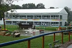 There were two main equestrian venues: Hong Kong Sports Institute (adjacent to Sha Tin Racecourse) and the Beas River Country Club. The Sports Institute held the main competition arena, which included an 80 × 100 meter stadium will all-weather footing and seating for 18,000. The Beas River Country Club was the site of the cross-country phase of eventing, which was held on the golf course.