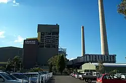 Eraring Power Station is a coal-fired power station consisting of four 720 MW Toshiba steam-driven turbo-alternators for a combined capacity of 2,880 MW. The station is located near the township of Dora Creek, on the western shore of Lake Macquarie, New South Wales, Australia and is owned and operated by Origin Energy. It is Australia's largest power station.[1] The plant has two smokestacks rising 200 m (656 ft) in height.[2] It was scheduled for closure by mid-2025, after a failed attempt to sell the loss making power station back to the state government.[3][4] The New South Wales Government in May 2024 extended the operational life of Eraring to August 2027.[5][6][7]