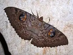 Erebus macrops, the common owl-moth, is a species of moth of the family Erebidae first described by Carl Linnaeus in 1768. It is found in the subtropical regions of Africa and Asia.[2] The wingspan is about 12 cm,[2] making it exceptionally large for an Erebidae species. The larvae feed on Acacia[3] and Entada species.