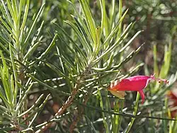 - Eremophila oldfieldii F.Muell. subsp. oldfieldii[6] which has thin, flat leaves;[2]