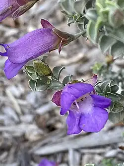 The silvery-grey foliage of this shrub contrast with its lilac to purple flowers but also with other shrubs planted near it, especially those with dark green leaves. It can be propagated from cuttings but is slow to strike and grafting on to Myoporum rootstock is usually easier. It grows best in well-drained soil in a sunny location but is drought tolerant, requiring a deep watering only once or twice during a long dry spell. It is only moderately frost tolerant but damage caused by a light frost can be pruned and the shrub will recover.[8]
