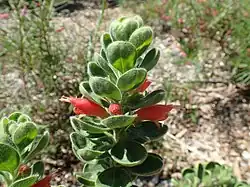 With its grey, furry leaves and masses of orange-red flowers, this is one of the most attractive eremophilas. It is fast-growing and its flowers attract nectar-feeding birds but it is often short lived. It can be easily propagated from cuttings and grown in a wide range of soils but performs best in full sun. It only needs an occasional watering during a long dry spell and is very tolerant of frost.[8]