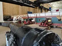 The Erie Maritime Museum is housed inside the former Penelec Front Street Station. From 1917 until the 1980s, the building was used to generate Erie, Pennsylvania's electricity and steam heat.[2] Inside were five coal-fired steam generators. Remnants of Penelec's presence on the property can be found to this day. Visitors to the museum can view the original smoke stack which rests to the west of the parking lot. Additionally, once inside, guests are able to view a General Electric steam-powered generator and the station's original crane, which still works today.[4] When Penelec decided to shut down their Front Street operation, the goal was to tear down the structure. Plans changed after local officials convinced Penelec to save the building for future use.[2]