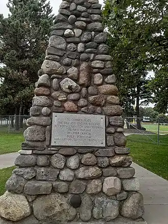 ![]() A cairn commemorating the former railroad. | |