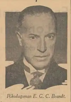 Erik Gottfrid Christian Brandt, called Brandt i Söderby in Parliament, (31 August 1884 – 22 October 1955[1]) was a Swedish politician (Social Democratic) and a deputy in the Riksdag (parliament) from 1938 to 1943.