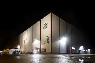 Eriksson Arena is an indoor arena for bandy situated in the forest outside Åby in Växjö Municipality in Sweden. The arena is 9 400 m² (120×78 m), it has an inner ceiling height of 12 m and is isolated.[1] The stands are along the long sides and has a capacity of 1 900 standing and 100 sitting spectators. The arena serves as home ice for Åby/Tjureda IF and had a building cost of 43 MSEK, of which 38,7 MSEK was provided as a loan from Växjö Municipality.[2][3]