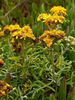 - ^ Calflora taxon report, University of California, Eriophyllum staechadifolium Lagasca, Lizard Tail, seaside golden yarrow, seaside woolly sunflower