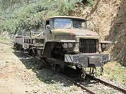 The Eritrean Railway is the only railway system in Eritrea. It was constructed between 1887 and 1932 during the Italian Eritrea colony and connects the port of Massawa with Asmara.[1] Originally it also connected to Bishia. The line was partly damaged by warfare in subsequent decades, but was rebuilt in the 1990s. Vintage equipment is still used on the line.