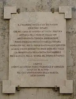 Erminio Sipari (1 December 1879 – 28 January 1968) was an Italian politician and naturalist, author of studies on the preservation of nature and founder of Parco Nazionale d'Abruzzo, which he chaired from 1922 to 1933.[1]