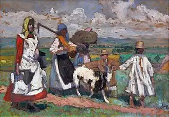 After returning from Paris, he held his first solo exhibition in Oradea and was married shortly thereafter. From 1912 to 1914, he exhibited in Stockholm, Gothenburg, Copenhagen and several cities in Germany, but he always made Nagyvárad his center of activity. During this time, he also helped organize an art and literature society called "Holnap" (Tomorrow).[1] He was often referred to as the "painter of Nagyvárad".