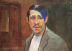 From 1904 to 1905 he studied at the Academy of Fine Arts in Budapest with Tivadar Zemplényi.[1] It was there he became interested in painting scenes from everyday life. He could not, however, tolerate the conservative approach taken by the Academy so, thanks to a scholarship from the city government of Nagyvárad (today Oradea, Romania), he went to Paris to study at the Académie Julian.[1] While there, he worked with Jean-Paul Laurens, who encouraged him to paint portraits; notably of the poets Endre Ady and Ákos Dutka, an old friend from school.
