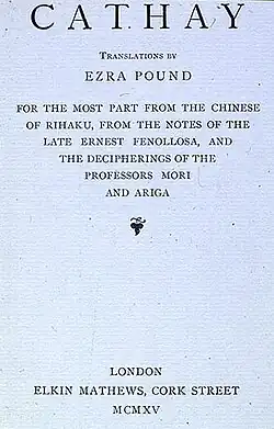 - Ezra Pound, Cathay: For the Most Part from the Chinese of Rihaku, from the notes of Ernest Fenollosa, and the Decipherings of the Professors Mori and Ariga, London: Elkin Mathews, 1915.