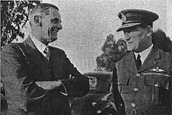 As early as 1936, an air training scheme was inaugurated at Cranborne, near Salisbury, where the civilian flying school instructed pilots. Facilities were later extended to Bulawayo. In August 1937, Squadron Leader G.A Powell and Flight Lieutenant V.E. Maxwell were seconded from the RAF to oversee service training.[25] In September 1939, the Rhodesian Air Training Group, under the direction of Air Vice Marshal (later Sir) Charles Warburton Meredith,[26] took in 500 recruits at Cranborne. An offer was made to British Air Ministry to run a flying school and to train personnel to man three squadrons, which was duly accepted.[27]