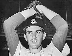 On April 11, 1959, Broglio made his major league debut for the St. Louis Cardinals, at the age of 23. After four appearances, he had a 9.00 ERA with an 0–2 record, and did not get his first win until his match-up against Philadelphia on June 16 which brought his record to 1–5.[2] Broglio ended his first season with a record of 7–12 with an ERA of 4.72 over 181.1 innings pitched and 35 appearances.[4] Not projected to be a part of the Cardinals' starting rotation in the 1960 season, Broglio made his first appearance in relief on the second game of the season pitching six innings against the Giants. After this performance, he alternated between relief innings and starts that brought him to a 9–4 record with a 2.86 ERA, and got him into the starting rotation for the next eighteen appearances.[2] The final half of the season resulted in a 2.74 ERA and a 21–9 record.[4] Broglio led the league along with Warren Spahn in wins, and his win percentage (.700) was second to teammate Lindy McDaniel's (.750).[4] He also had the second best ERA in the league, and was ranked third in the Cy Young Award voting for the season.[4] In addition, Broglio received the National League Sophomore of the Year Award that season. This award is not well known; MLB discontinued the award in 1962 due to the lack of interest. The award was given to the player who performed the best during their second full season, avoiding what some baseball fans would call the sophomore "jinx" or sophomore slump for hitters.[5] Broglio had arm problems over the remaining years of his career with the Cardinals which contributed to the general management's decision to involve Broglio in a five-player trade with the Chicago Cubs that resulted in the Cardinals obtaining Lou Brock.[6]