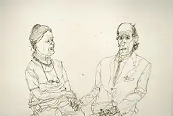 Ernst Hiesmayr was married to Isolde Moosbrugger. He was painted by Maria Lassnig[7] and drawn by Matthias Laurenz Gräff.[8][9]