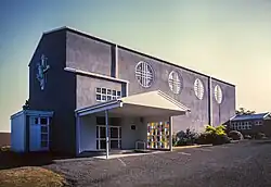 When Plischke arrived in New Zealand in 1939 with his wife Anna, he was already known in architectural circles to be at the forefront of modernist design.[2] He began working for the Ministry of Housing on projects such as the Dixon Street Flats. In 1942, he designed the Abel Tasman Monument for a site in Golden Bay for the tercentenary of Abel Tasman's visit to New Zealand.[3] From 1943 to 1947 he worked for the Department of Town Planning producing work in areas including: Naenae, Trentham, Tāmaki and Mangakino. He also completed private work during this time, including the Frankel House in Christchurch (for Otto Frankel), which was his first commission.[4] Frankel House is a Category 2 entry on the Heritage New Zealand register.[5]