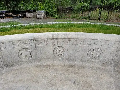 The fountain was built to honor John Erskine, a Federal judge from Atlanta who died in 1895.[1] The fountain, which cost $15,000 to build, was a gift from Erskine's daughter to the city of Atlanta and was dedicated by Mayor Porter King on May 2, 1896.[2] It was the first public fountain in Atlanta.[3] The fountain was originally placed at what is now Hardy Ivy Park, at the diversion of Peachtree Street and West Peachtree Street.[2] The fountain replaced a statue of Benjamin Harvey Hill,[4] which was moved from the location to the Georgia State Capitol, where it still stands.[1] The fountain and accompanying bench were designed by J. Massey Rhind and feature an ocean theme, along with inscriptions of the Zodiac signs.[1] The lower bowl of the fountain originally had bronze cups attached with chains to allow people to drink from it, though these have since been removed.[2]