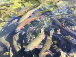The Erwin National Fish Hatchery specializes in the production of millions of rainbow trout and brook trout eggs each year as part of the National Broodstock Program. It maintains three different strains of rainbow trout and one strain of brook trout, each of which begins its spawning cycle at a different time of the year. The hatchery strives to optimize the genetic diversity of its broodstocks and conducts research into their behavior and performance to improve their quality. [6] The eggs the hatchery produces supply a number of facilities in the eastern United States,[7] and fish raised at the hatchery are used to stock waterways throughout the southeastern United States.[6] The hatchery also provides eggs to research centers, universities, and schools for research and educational use.[6]