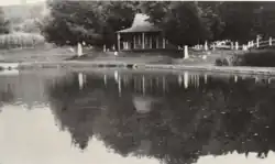 During the 1970s the hatchery sold most of its land on the western side of the railroad tracks to the town of Erwin, and that land became Fishery Park, a popular place for recreational fishing, swimming, and tennis. By 1982, the Morefield House was dilapidated and the U.S. Government ordered it demolished, but the Unicoi County Chamber of Commerce intervened and worked out an agreement with the hatchery's superintendent to preserve the house as a museum and community center. The Unicoi County Heritage Museum opened in the house on July 3, 1982.[3][4]