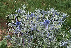 Eryngium amethystinum, the amethyst eryngo,[1] Italian eryngo[2] or amethyst sea holly, is a clump-forming, perennial, tap-rooted herb. Its stem is 30 to 50 cm long and is light blue to purple in colour. It has a basal circle of obovate, pinnate, spiny, leathery, mid-green leaves. It flowers in mid to late summer with cylindrical umbels, 2–3 cm long atop silvery blue bracts and branching stems. The plant is native to the eastern Mediterranean and prefers dry places and soils that are rich in calcium.[3]