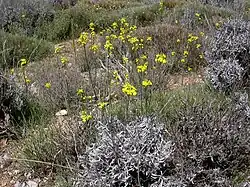 Erysimum mediohispanicum is a perennial short-lived monocarpic herb found in many montane regions of eastern Spain where it is distributed between 800–2,000 m above sea level and inhabits forests, scrublands, and shrublands. It occupies two main regions in the Iberian Peninsula, one in the north (Soria to Lleida) and the other in the south-east (Granada, Albacete, Jaén, and Almería provinces). Erysimum mediohispanicum may be treated as one of a group or complex of six closely related species, or as Erysimum nevadense subsp. mediohispanicum.[1][2]
