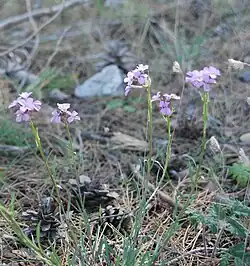 This wallflower is located between 900–1,700 m (3,000–5,600 ft) above sea level inhabiting oak forests, semi-arid scrublands and high-mountain shrublands.