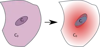 Eshelby started with a thought experiment on the possible stress, strain, and displacement fields in a linear elastic body containing an inclusion. In particular, he considered the situation in which the inclusion has undergone a transformation (such as twinning or localized thermal expansion) but its change in shape and size are restricted because of the surrounding material. In that situation, the inclusion and the surrounding material remains in a stressed state. Also the strain states in the body and the inclusion are potentially inhomogeneous and complicated.