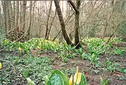 The Common was not always wooded, and much of the area was formerly open heathland used as common grazing land. It had not been grazed for many years and much of the area is now secondary woodland, including conifer plantations from the 1950s. Grazing trials began on a small area of Esher Commons in 2015. In the first year 15 goats were introduced to a 2.5ha area of heath for a period of six months.[9] Esher Commons Site of Special Scientific Interest covers a large part of Arbrook, Esher, Oxshott, West End and Fairmile Commons and the Ledges. Arbrook Common is the easternmost, named after the Arbrook, at other points and sources known as the 'Rythe'. Otherwise much of the remainder of the commons is a subterranean aquifer.[10][11] A programme to fell tracts of secondary woodland has led to various public protests.[12] In spite of the SSSI designation, the A3 Esher bypass was built through the middle of Esher Common in 1974. As compensation, approximately 90 acres (360,000 m2) of "exchange land" became part of the Commons. The Ledges were added to West End Common, and an area including Middle Pond became part of Esher Common.
