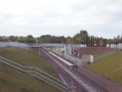 The original Eskbank and Dalkeith railway station was previously closed (along with the Waverley Route) in 1969. The new construction work was undertaken by BAM Nuttall. The new station, further south than the original, opened on 6 September 2015.[2]