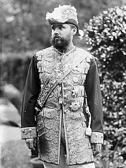 His expertise in Eastern matters and his high social standing led to him being selected to accompany the Tsesarevich Nicholas on his Grand tour to the East. Nicholas took a liking to Esper Ukhtomsky, writing to his sister that "the little Ukhtomskii...is such a jolly fellow".[8] Instead of visiting Europe on his "Grand Tour", Nicholas advised by Ukhtomsky decided to take his "Grand Tour" mostly in Asia.[6] The "Grand Tour" of 1890-1891 began in Vienna, going on to Trieste, the principle port of the Austrian Empire. From Trieste the Imperial party sailed to Greece and from there they travelled to Egypt.[6] From Egypt, they travelled via the Red Sea and the Indian Ocean to India, Ceylon (modern Sri Lanka), Singapore, French Indochina (modern Vietnam, Cambodia and Laos), China, and Japan.[6] From Japan, they sailed to the port city of Vladivostok, the "star of the East", where in March 1891 Nicholas formally opened the construction of the Trans-Siberian Railroad to link Moscow to Vladivostok.[9] From Vladivostok they travelled across Siberia to finally return to St. Petersburg.[6] After returning to Russia in 1891, Ukhtomsky was appointed to the role of court chamberlain, and served on the Siberian Railway Committee. He also began work on his account of the grand tour, entitled Travels in the East of Nicholas II.