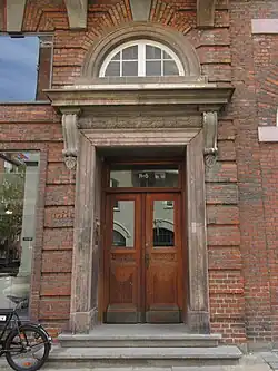 The buildings was probably designed by Andreas Kirkerup. It is constructed in red brick with plinth, cornices and window frames in Bornholmian granite. The building is seven bays wide and has a median risalit. The first floor features three-bay balcony supported by corbels. One of the corbels features a relief of an anchor. The reliefs on the three other corbels are slurred. The lowest floor and high cellar was merged into a new ground floor with mezzanine.[3]