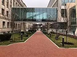 The Martin Luther King Jr. Justice Building at 490 Martin Luther King Jr. Boulevard was designed by Comito and Associates of Newark and built between 2018 – 2021. The four-story glass, steel and concrete structure is just south of the Hall of Records and joined to it with a glass "skywalk". The building has 11 courtrooms.[9] The County Clerk is headquarter in the building. Two statues of Martin Luther King Jr. are located on the grounds. Busts of human rights advocates Congressman John Lewis, Supreme Court Justice Ruth Bader Ginsburg and Congressman Peter Rodino are found in the lobby. Busts of Supreme Court Justices Sonia Sotomayor and Thurgood Marshall civil rights activist Rabbi Joachim Prinz, and Lieutenant Governor of New Jersey Sheila Oliver are planned.