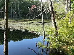 The Estabrook Woods is a wild tract of more than 1,700 acres (6.9 km2) of woodland, hills, ledge, and swamp straddling Concord and Carlisle Massachusetts, two miles (3 km) north of the center of Town of Concord.[1] It is the largest contiguous and undeveloped woodland within thirty miles of Boston.[2] However, the woods have a history of human disturbance dating back to the Algonquian Native Americans who used controlled burning to clear tracts of land.[3] Later, colonists cleared much of Estabrook for agriculture and pastures, although vegetation has since rejuvenated.[3] The Woods are named for the Thomas Estabrook family, prominent in the area since colonial times.[4]